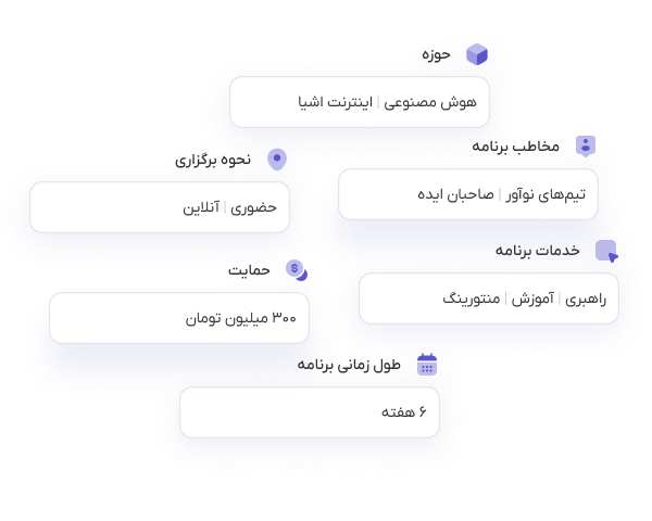 بعد از انتخاب برنامه مورد نظر، کافیه فرم ثبت طرح را تکمیل کنید و برای نهاد نوآوری یا رویداد مورد نظرتون ارسال کنید. در طی فرایند ارزیابی میتوانید از آخرین وضعیت طرحتون مطلع باشید و مشاهده کنید که طرحتان در چه مرحلهای از فرایند ارزیابی هست.